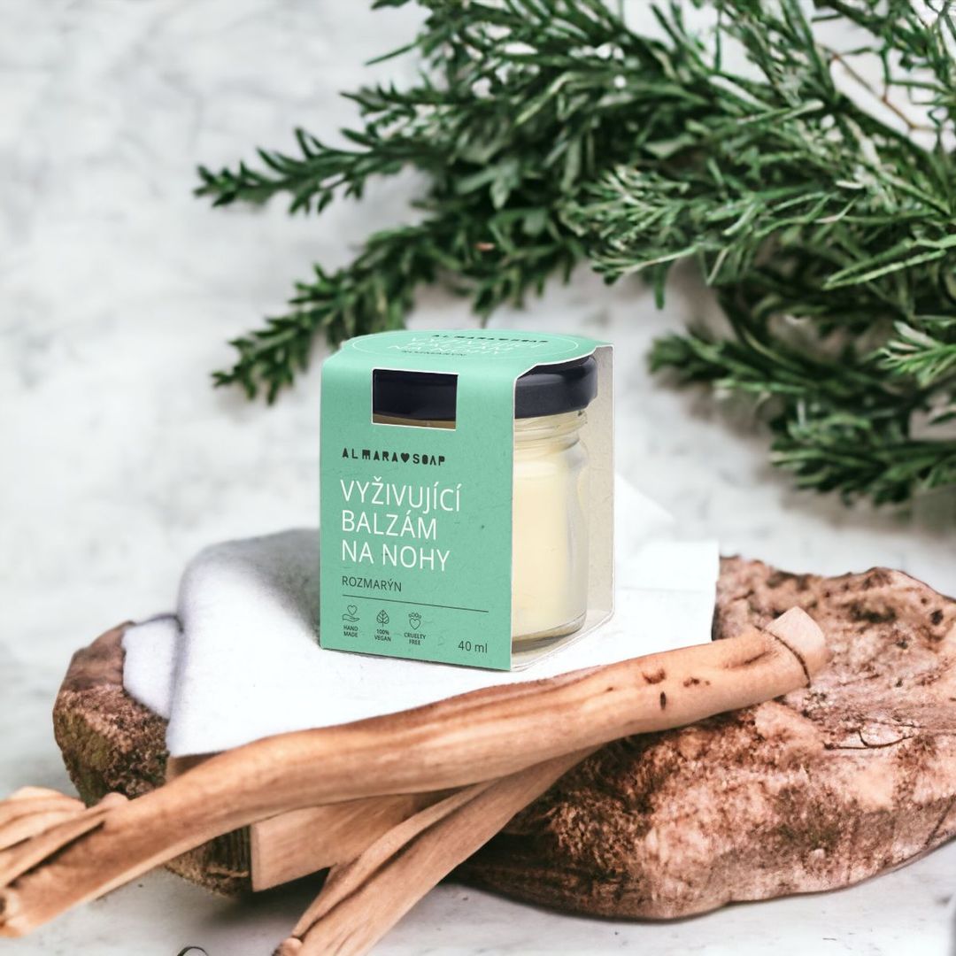 Ošetrujúci prírodný balzam na chodidlá stvorený na suchú a popraskanú kožu chodidiel.